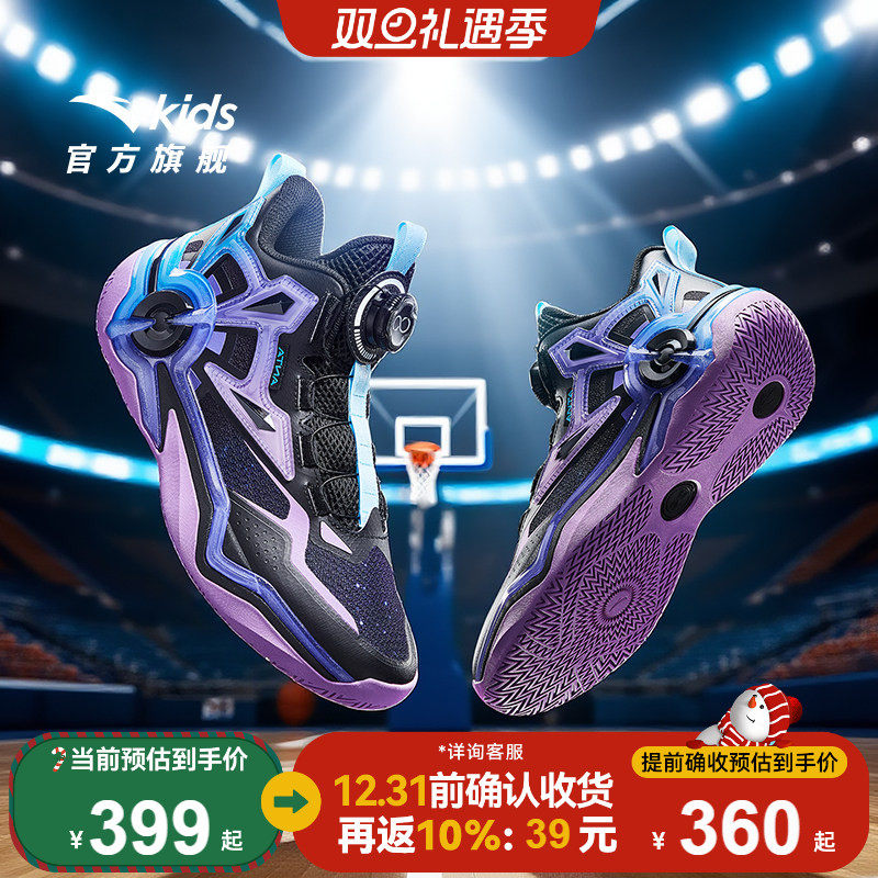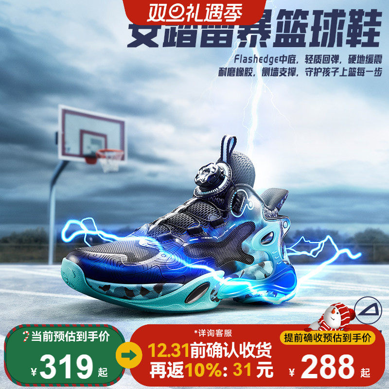 安踏儿童雷暴篮球鞋秋冬新款防滑高帮防护抗扭旋钮男大童运动童鞋