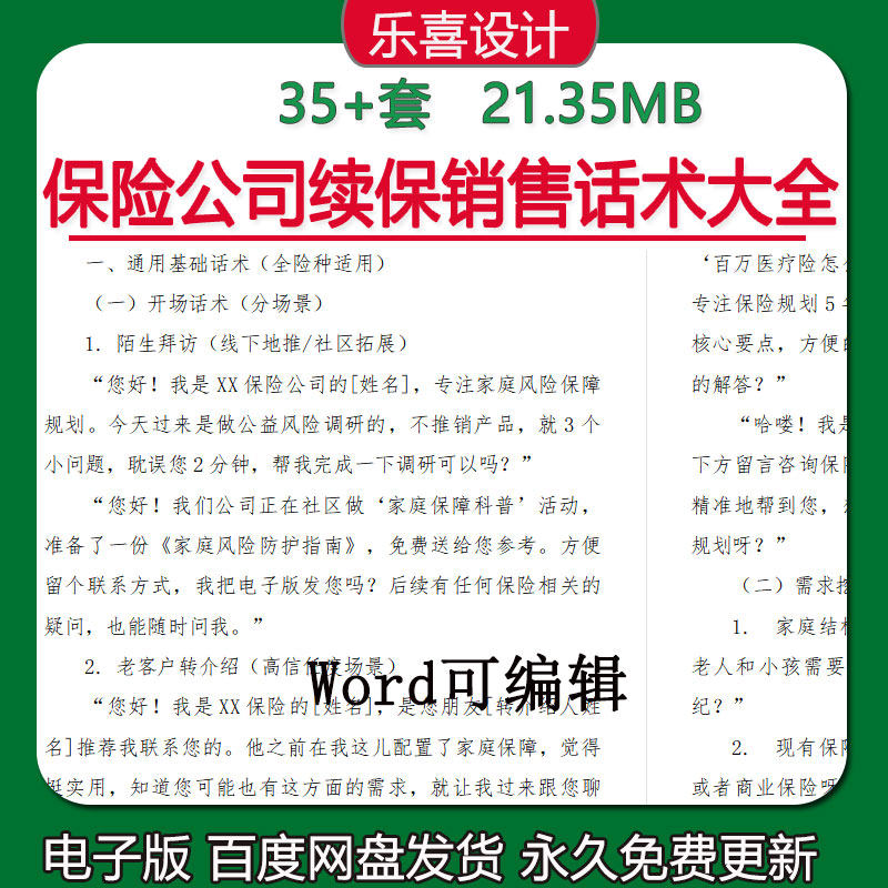 保险公司续保销售话术大全开场话术促成签单及各险种专项销售话术