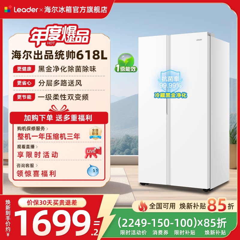 换新补贴海尔出品统帅618L双开对开门大容量无霜一级变频家用冰箱