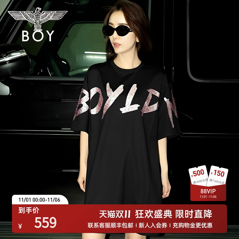 【公主日记】BOYLONDON潮牌连衣裙女夏季时尚高街黑色中裙W17003