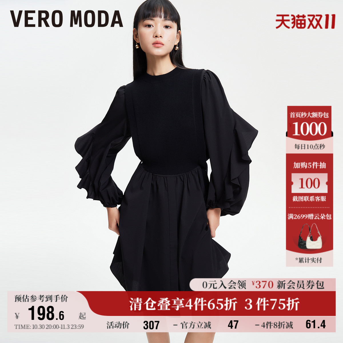 Vero Moda奥莱连衣裙秋季新款可拆卸背心宽松灯笼袖中裙子流行