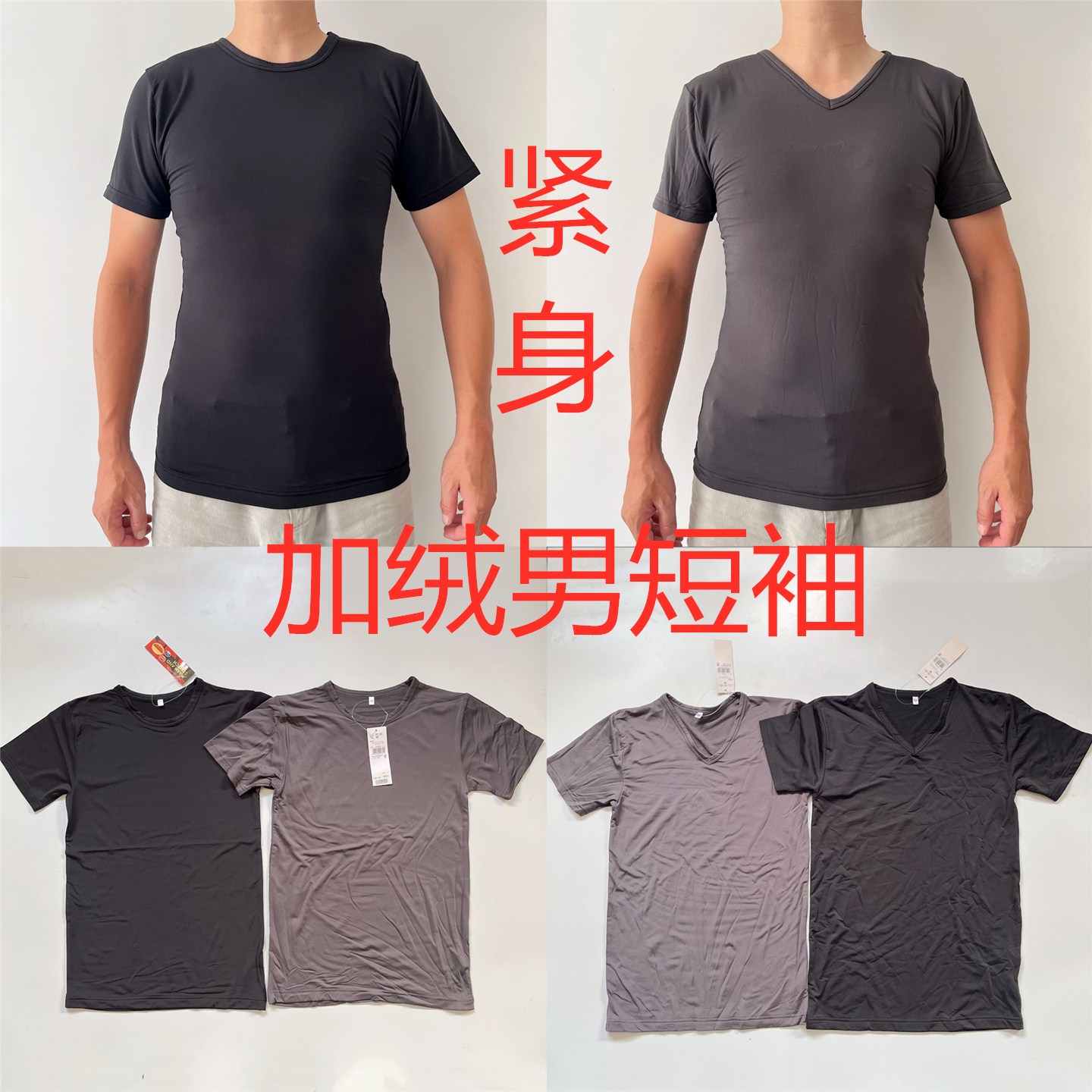 秋冬莫代尔薄款男短袖T恤无痕V领紧身打底衫背心内搭修身内衣上衣