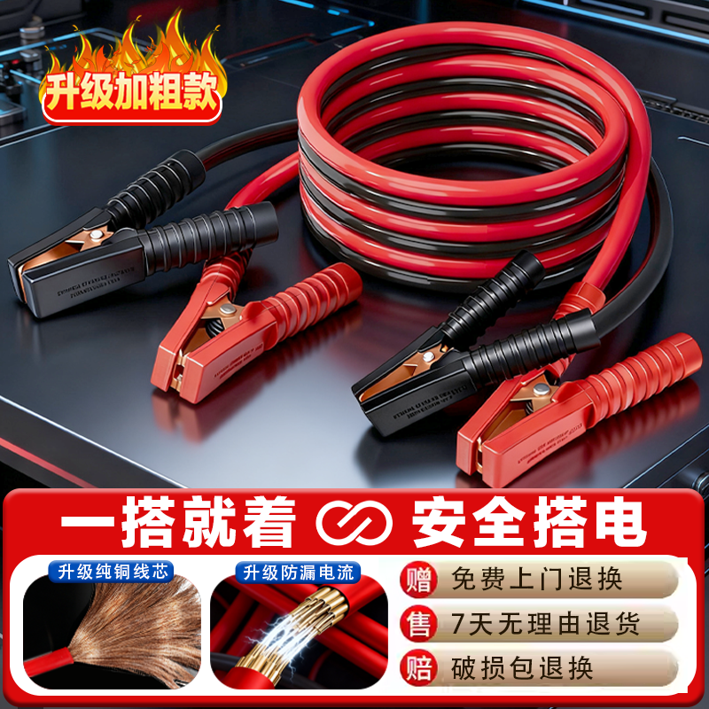 汽车电瓶连接线电瓶线搭火线搭电神器纯铜打火线过江龙夹子搭车线
