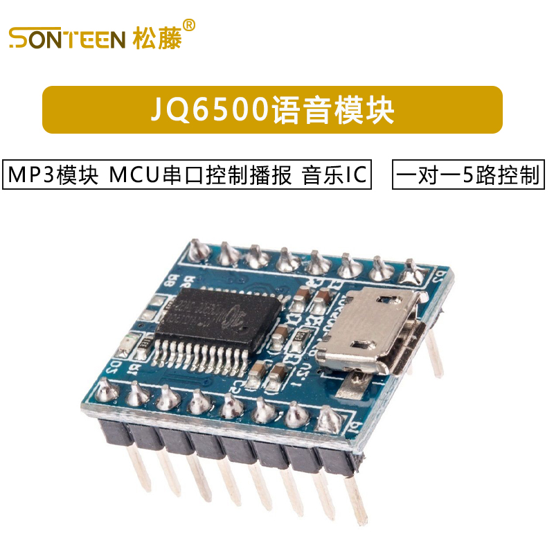 JQ6500语音模块 MP3模块 MCU串口控制播报 一对一5路控制 音乐IC
