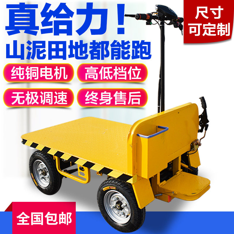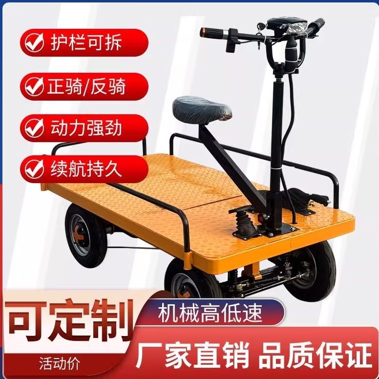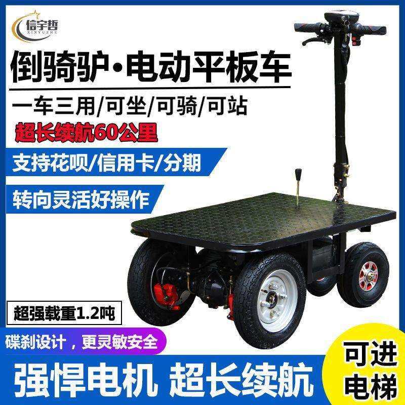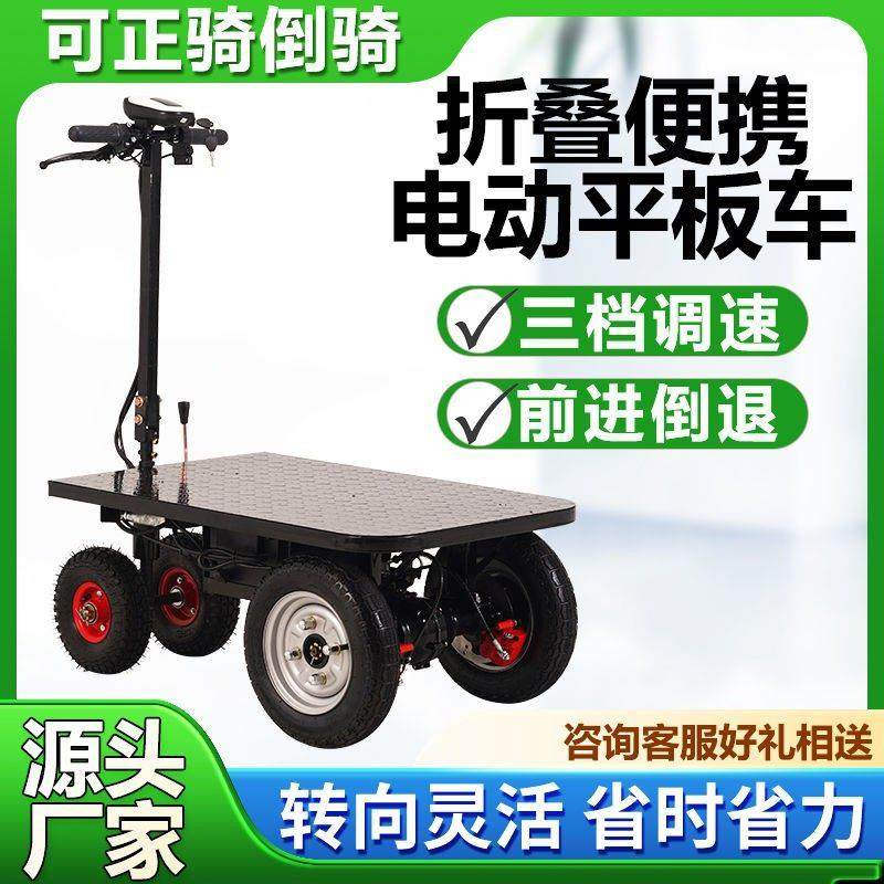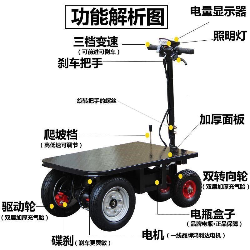 电动平板车工地拉货载重四轮倒骑驴仓库运输车锂电手推摆摊搬运车