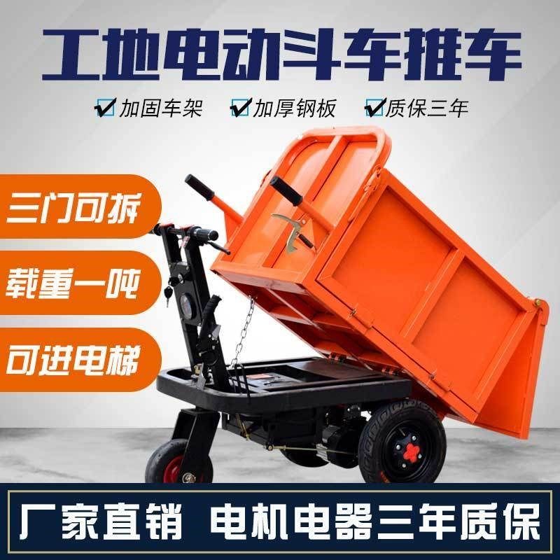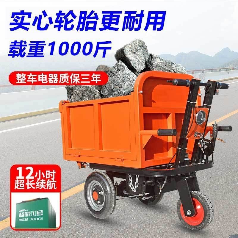 建筑电动手推车灰斗车工地翻斗货车拉沙养殖料平板车搬运车三轮车