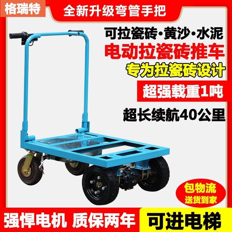 拉瓷砖电动手推车平板车搬运车进电梯拉货沙子小推车载重王手拉车