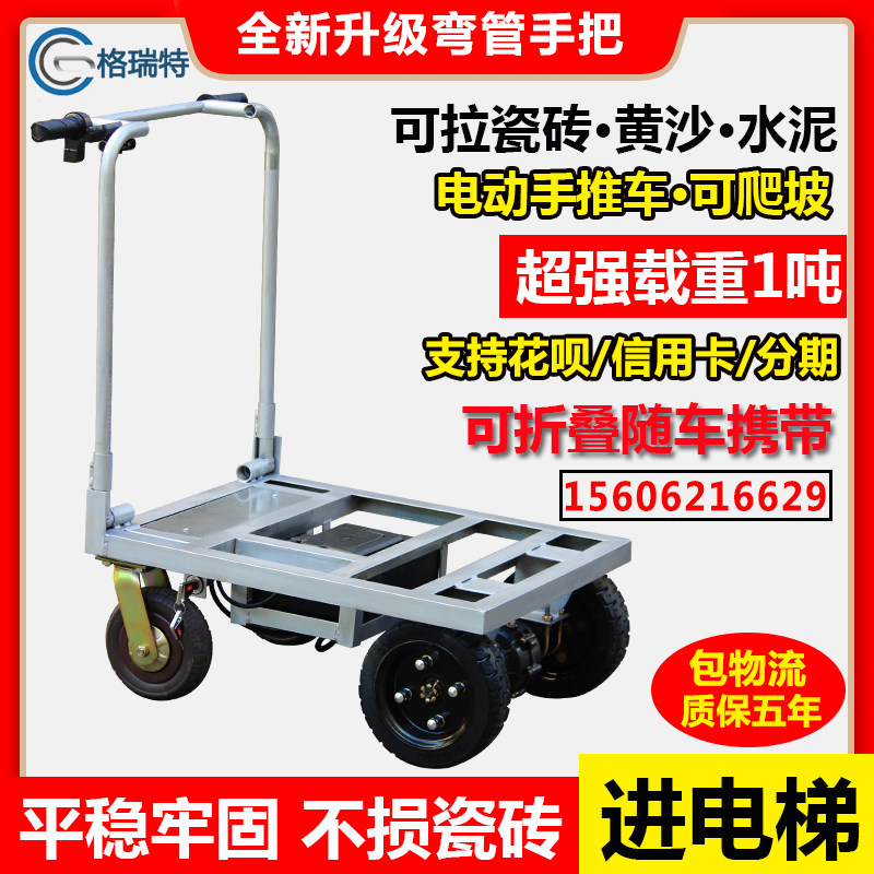 电动手推车平板车搬运车拉货水泥黄沙瓷砖可折叠进电梯四轮小推车