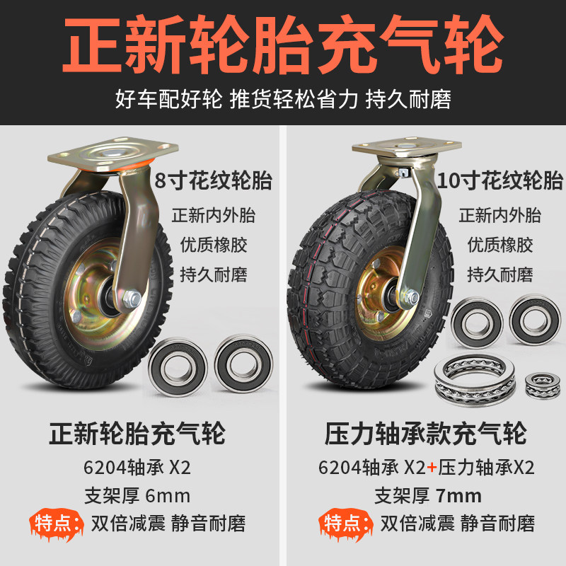 正新轮胎8寸/10寸充气万向轮电动手推车平板车打气高速脚轮可拖拽