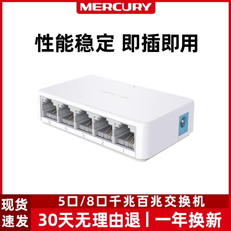水星5/6/8口百兆交换机千兆网络分线器宿舍家用监控集线器五八孔10路由器网线分流器商用企业钢壳高速交换器