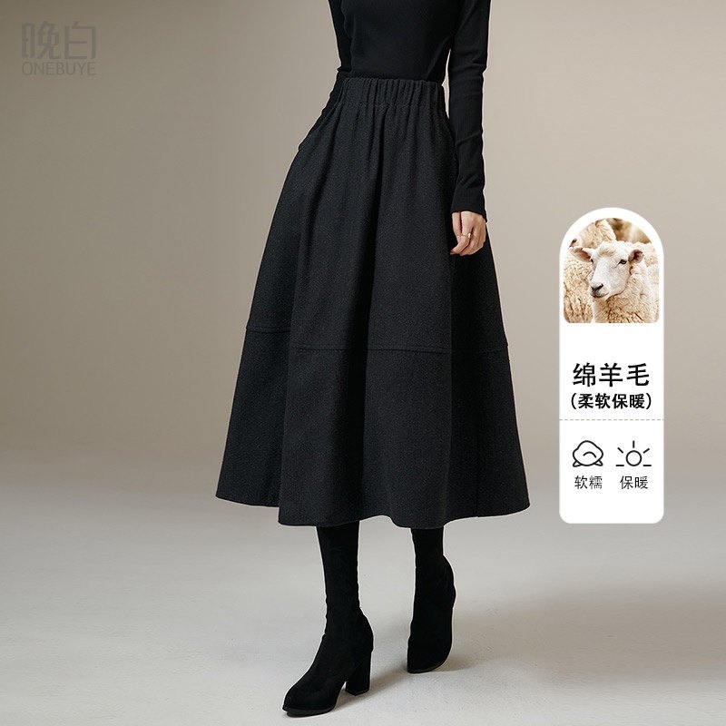 - 半身长款毛呢裙