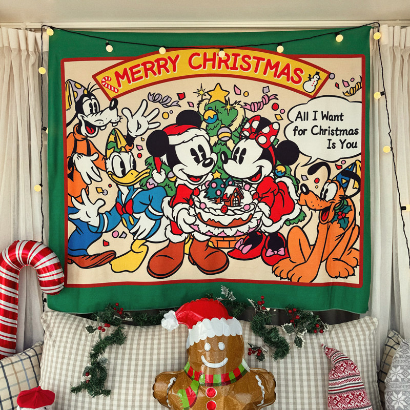 马吉吉自制 新款复古米奇圣诞节卡通节日装饰背景布卧室房间挂布
