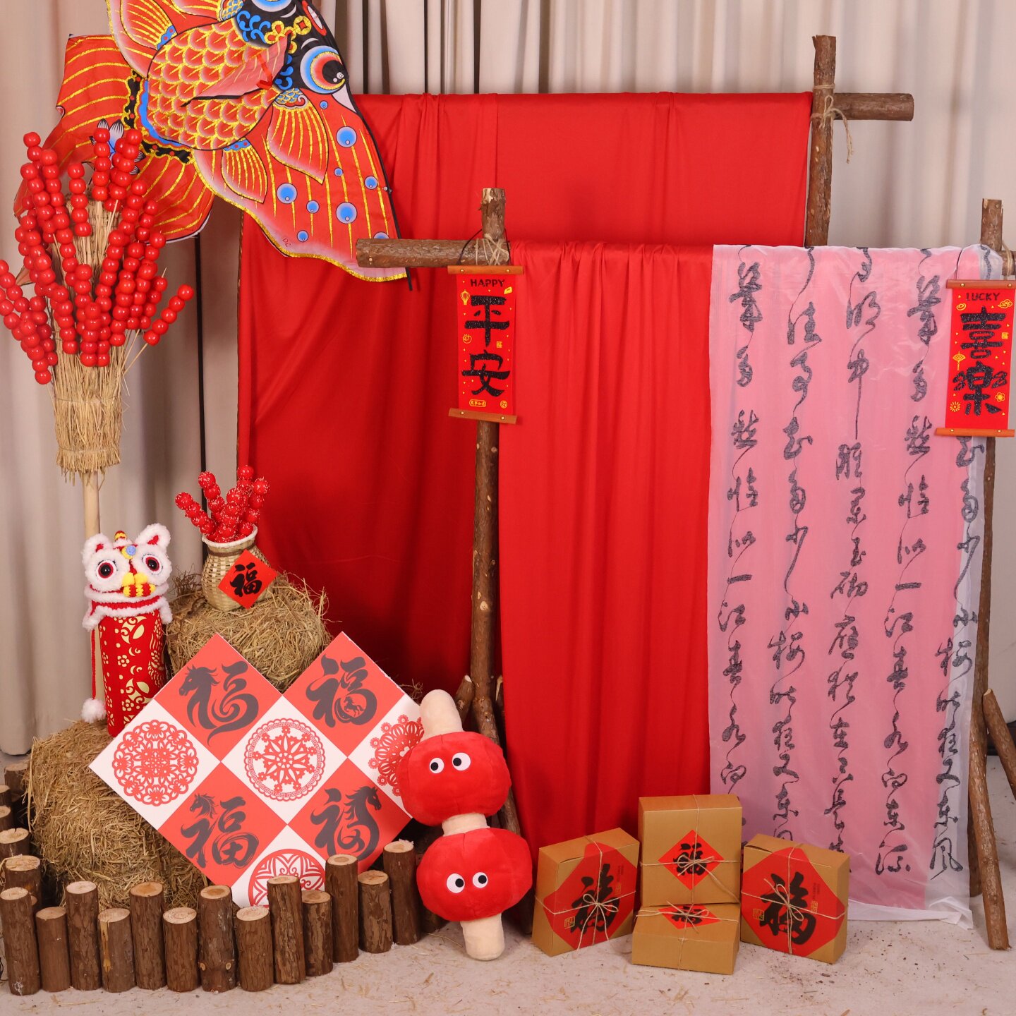 新年氛围感红色布幔装饰春节场景布置新中式幼儿园环创背景布挂布