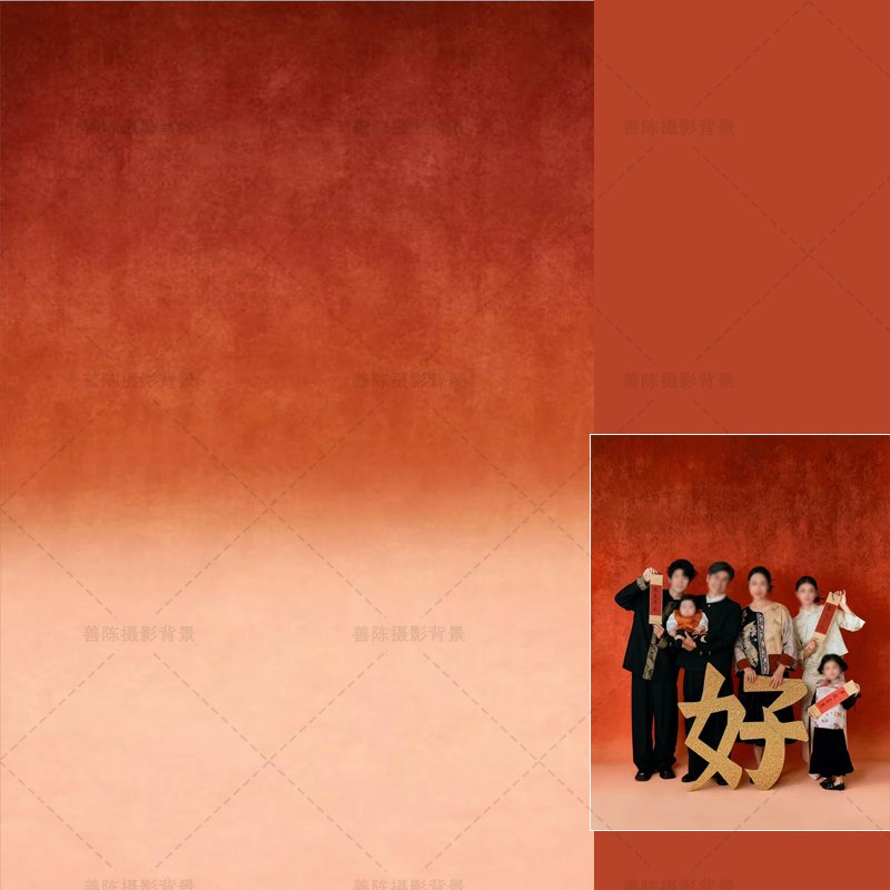 马年全家福新中式国风橙红油画肌理背景布一家三口新年拍照背景纸