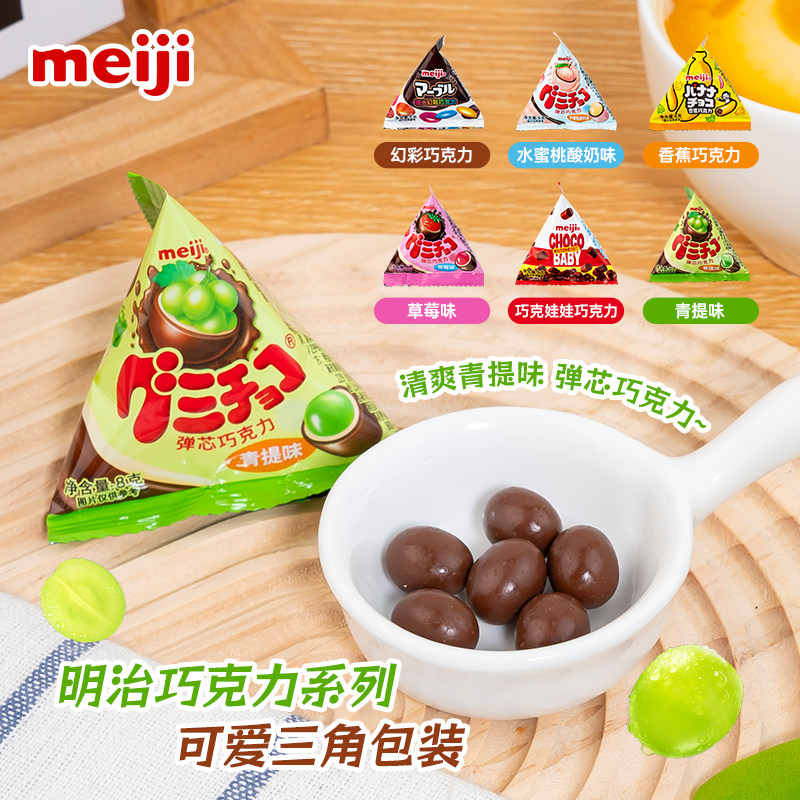 6包邮meiji明治小糖果三角包橡皮糖巧克力迷你什锦糖豆儿童小零食