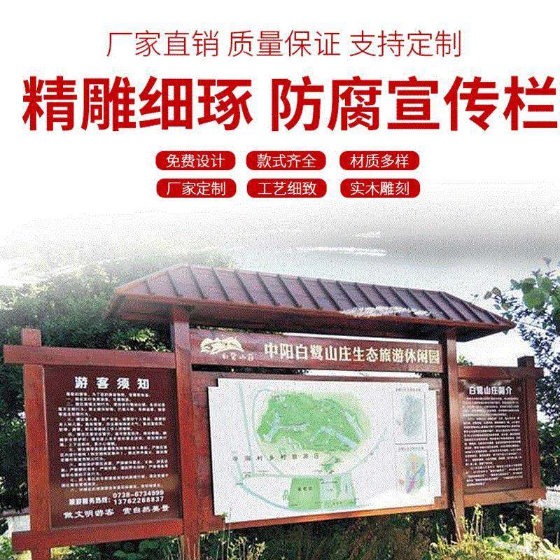 户外防腐木宣传栏实木美丽乡村广告牌木制公告栏导览牌告示栏木质