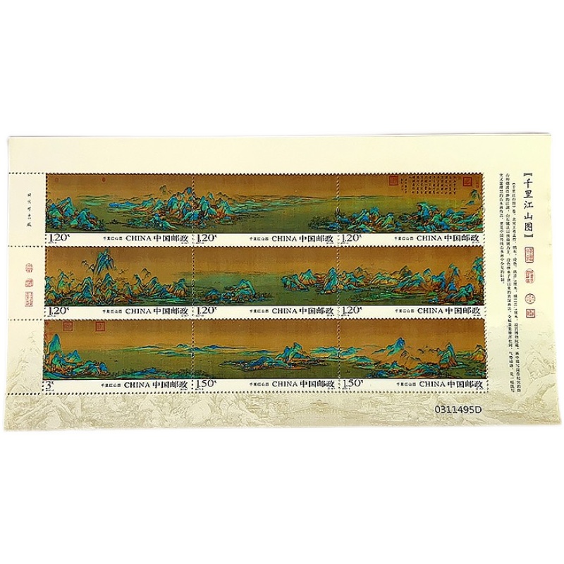 祖国江山版票系列全套4个 长江 黄河 长城 千里江山图 小版 邮票