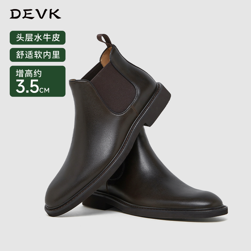 切尔西靴男冬季加绒圆头中帮短靴高帮皮鞋厚底烟筒靴内增高马丁靴