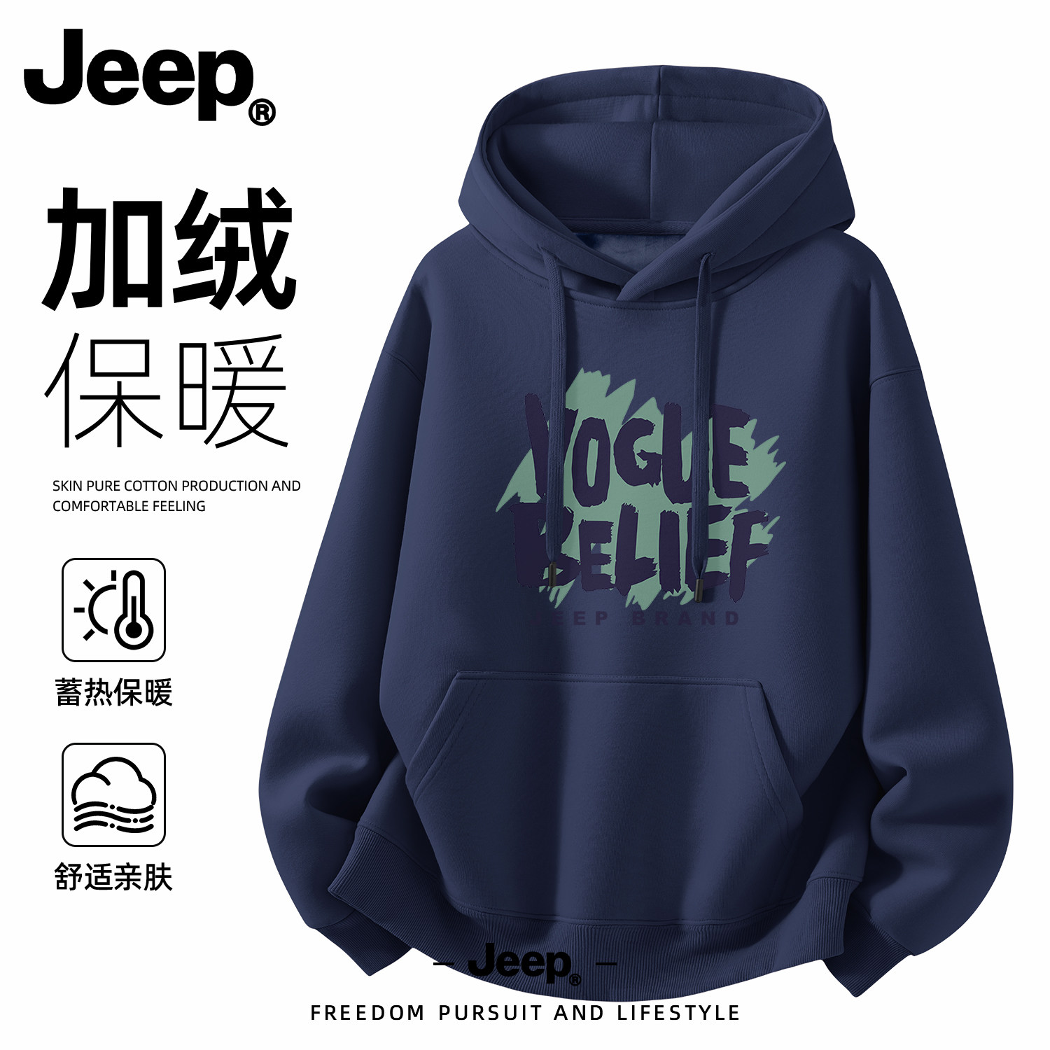 Jeep吉普连帽卫衣男外套加厚青少年衣服新款男士美式长袖保暖上衣