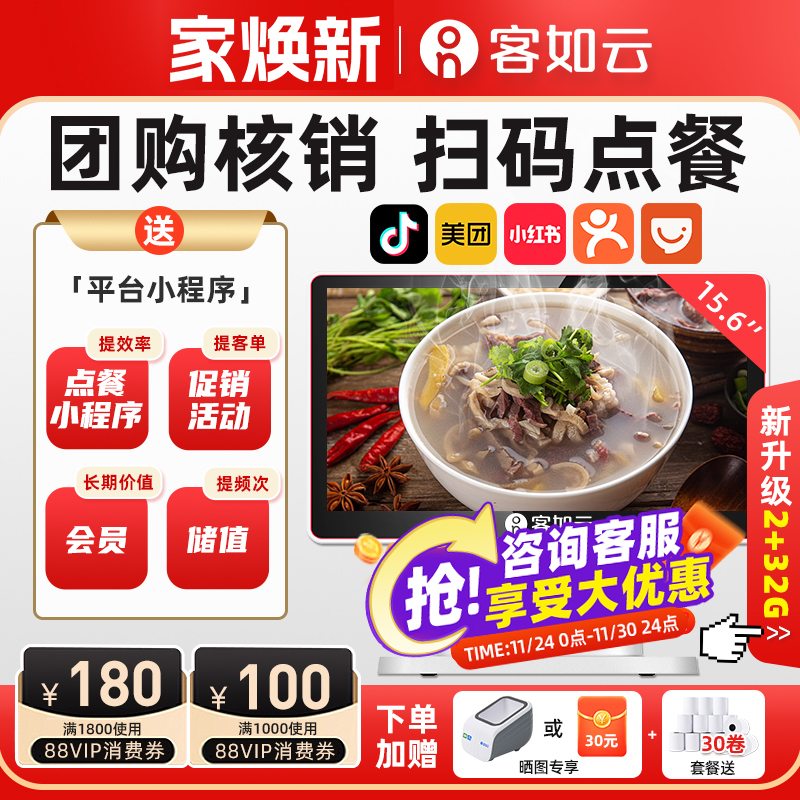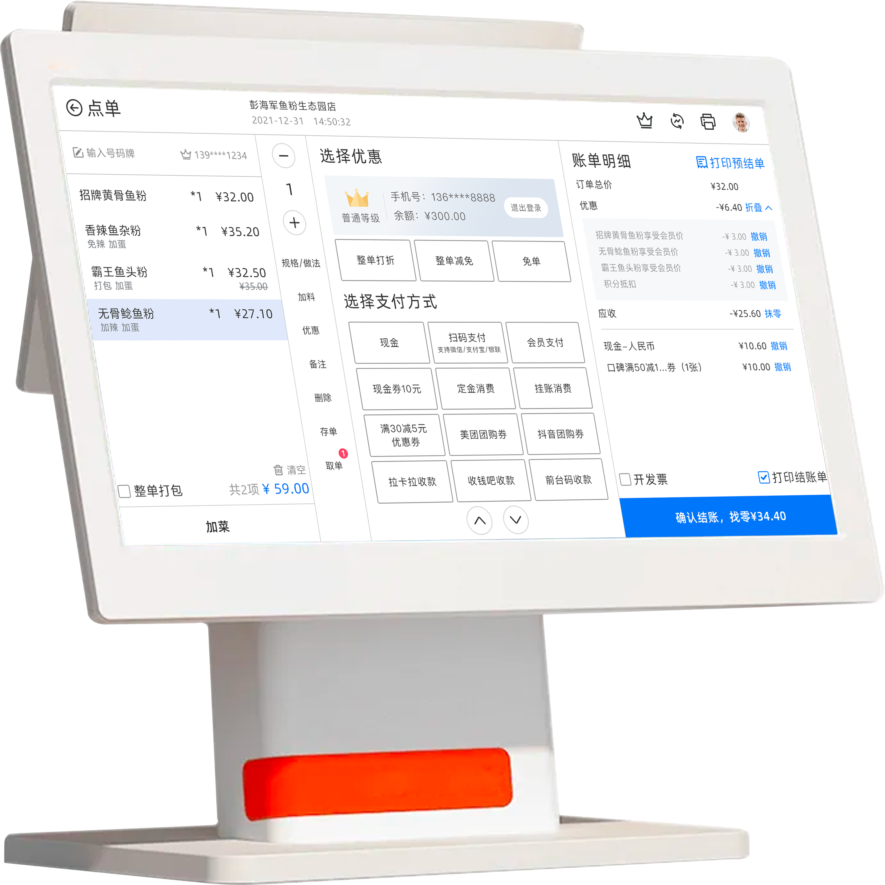 美团餐饮收银系统管理一体机奶茶店熟食店触摸屏点餐机面馆扫码外卖点菜点单机商用收款机收银系统管理软件