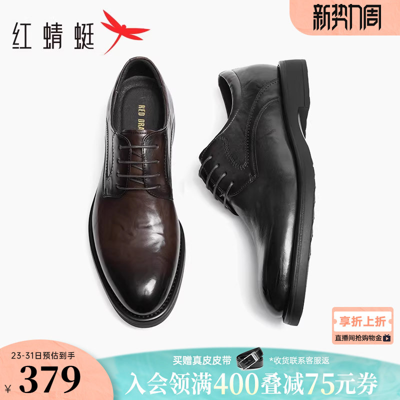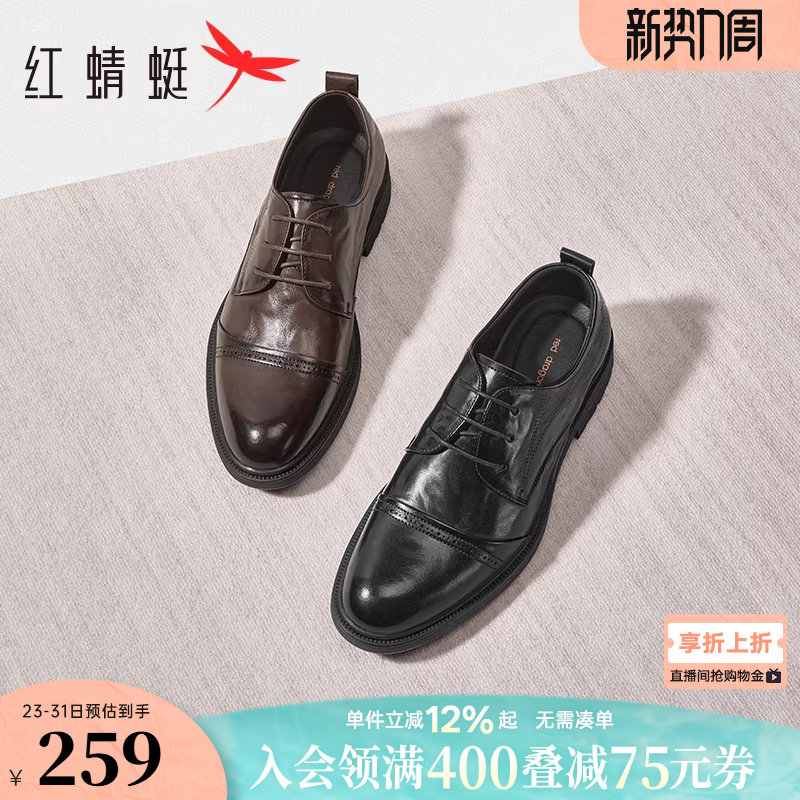 红蜻蜓男士皮鞋新款男鞋商务正装皮鞋英伦真皮棕色鞋子结婚新郎鞋