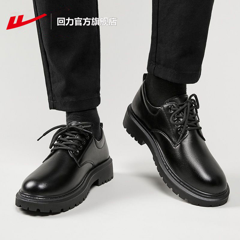回力皮鞋男款2026夏新款商务正装休闲鞋子男马丁靴黑色厚底德比鞋