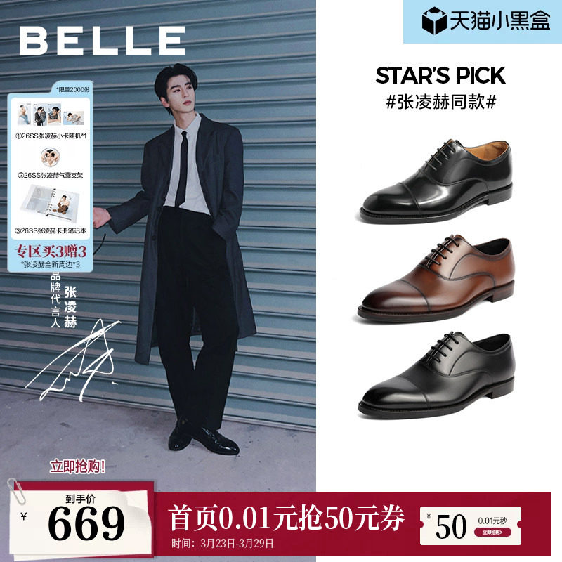 张凌赫同款百丽鞋子男商务正装牛津皮鞋男内增高三接头婚鞋59736