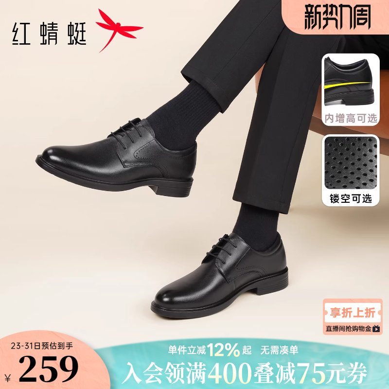 红蜻蜓皮鞋男春秋正装真皮年轻款男鞋内增高鞋新郎婚鞋男士款鞋子