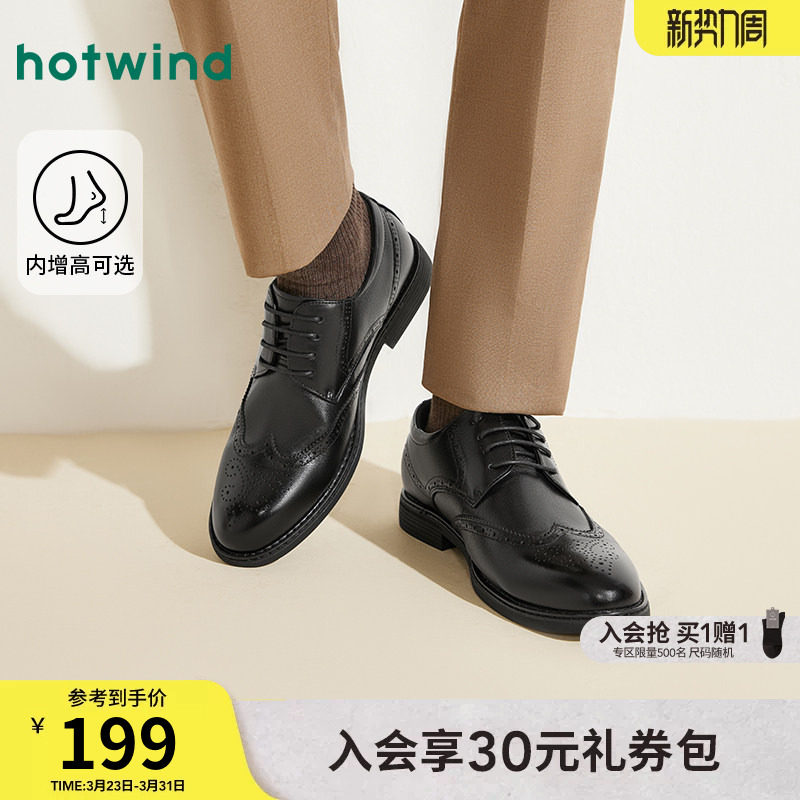 热风男鞋皮鞋男士德比鞋春季新款内增高布洛克正装休闲结婚皮鞋子