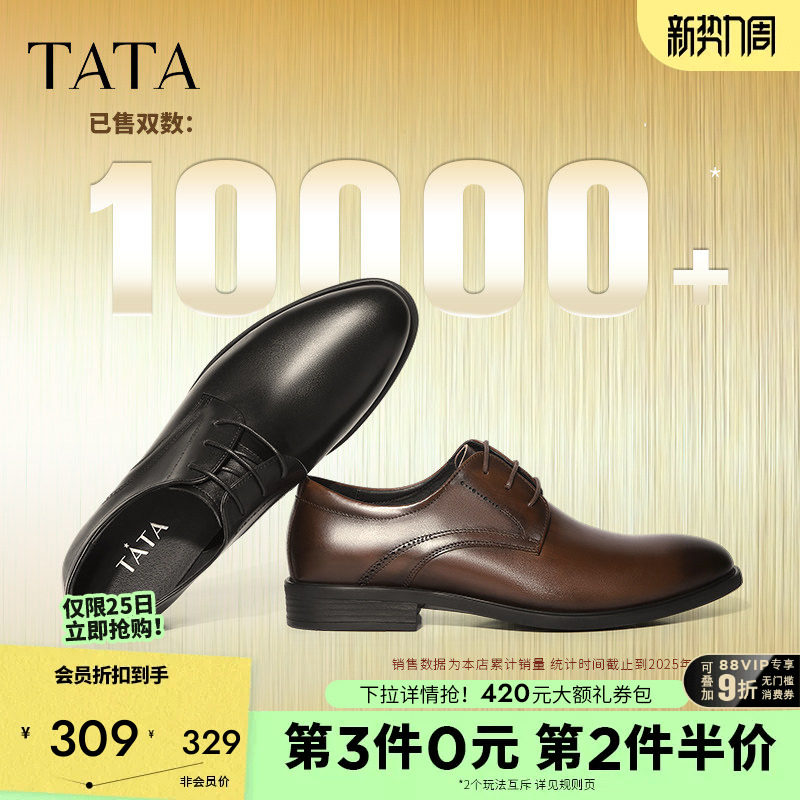 TATA他她男鞋商务正装男士皮鞋内增高结婚新郎鞋真皮透气德比鞋子