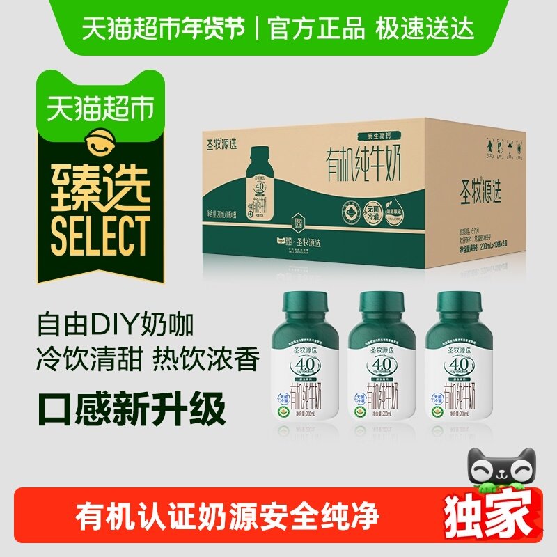 【臻选】圣牧有机纯牛奶200ml*20瓶4.0g蛋白质高钙儿童纯牛奶整箱