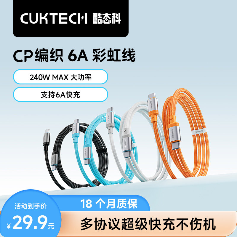 CUKTECH酷态科CP编织快充6A充电线240W手机数据线ctoc车载双typec接口适用于小米华为安卓iPhone苹果17pro