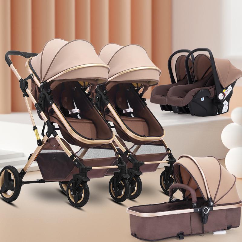 可拆分双胞胎手推车新生儿高景观婴儿推车可坐躺双人轻便折叠童车