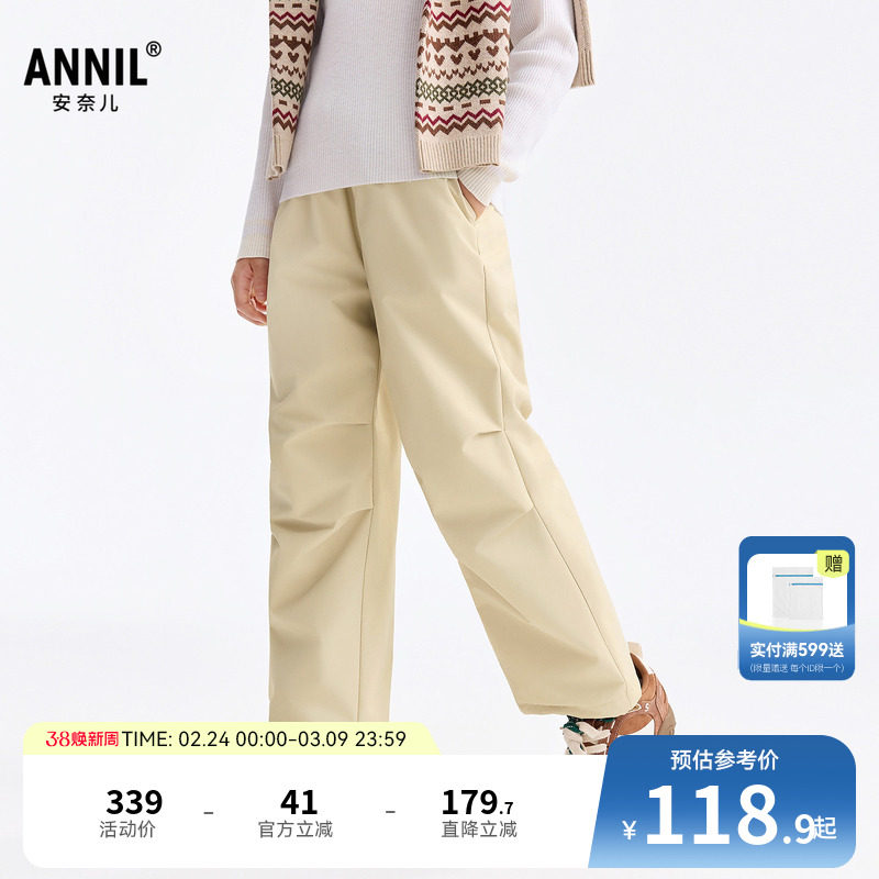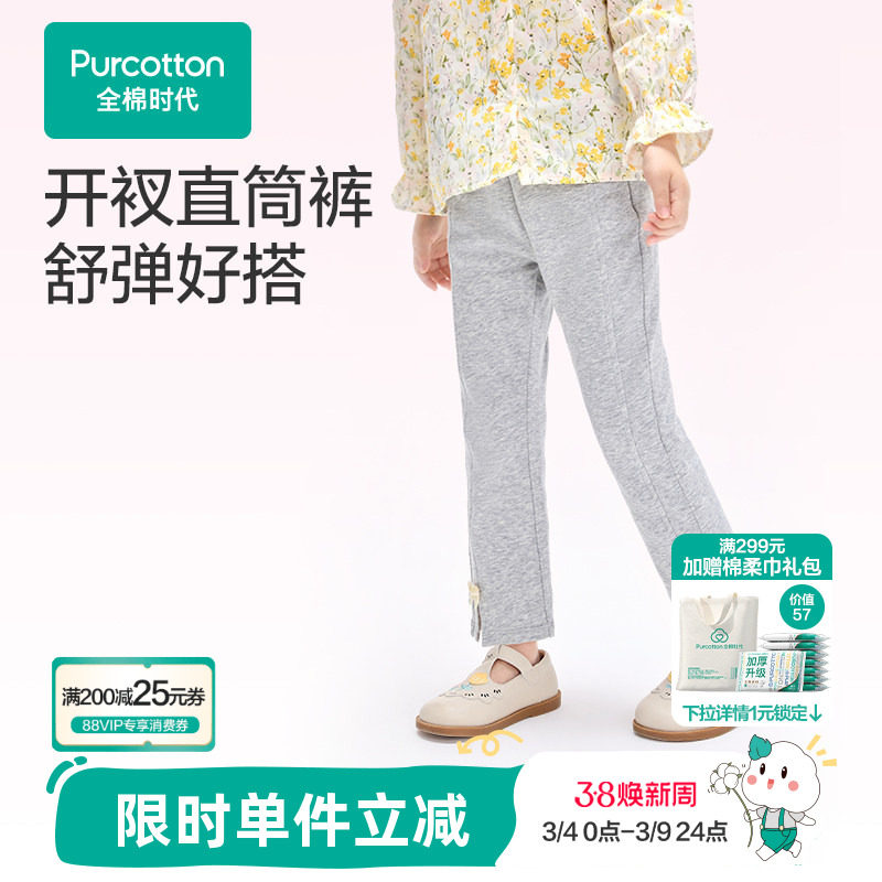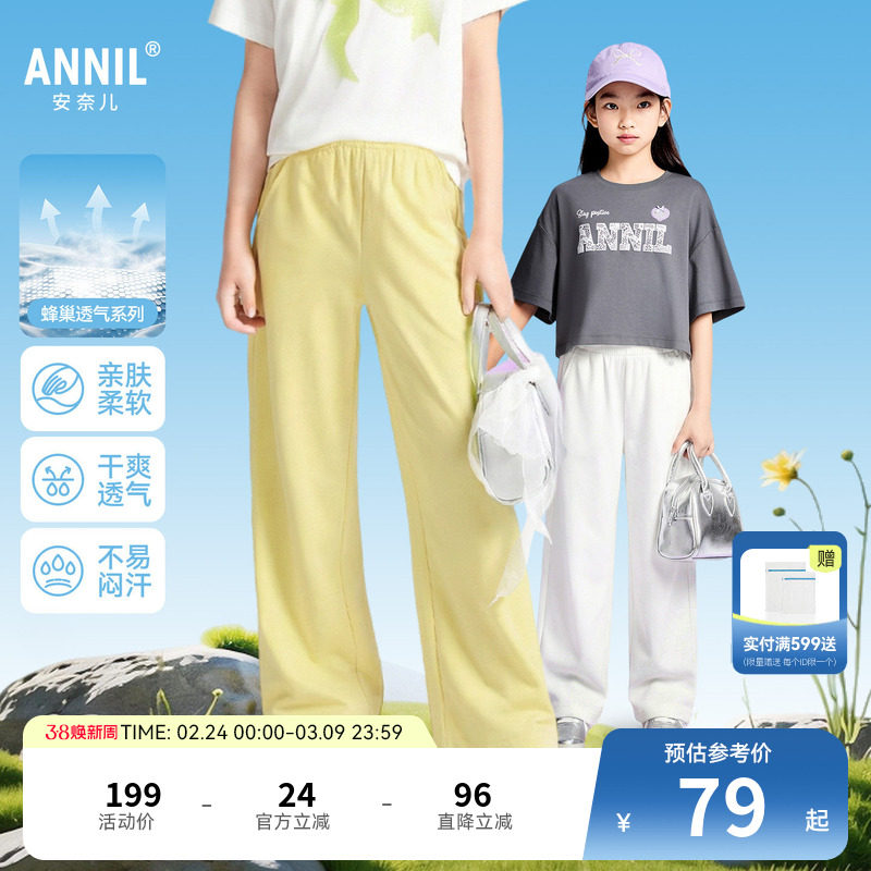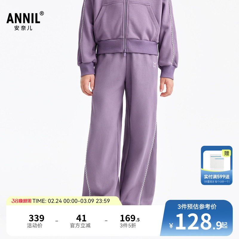 安奈儿童装女童裤子2026春新款运动休闲直筒卫裤甜美宽松弹力长裤