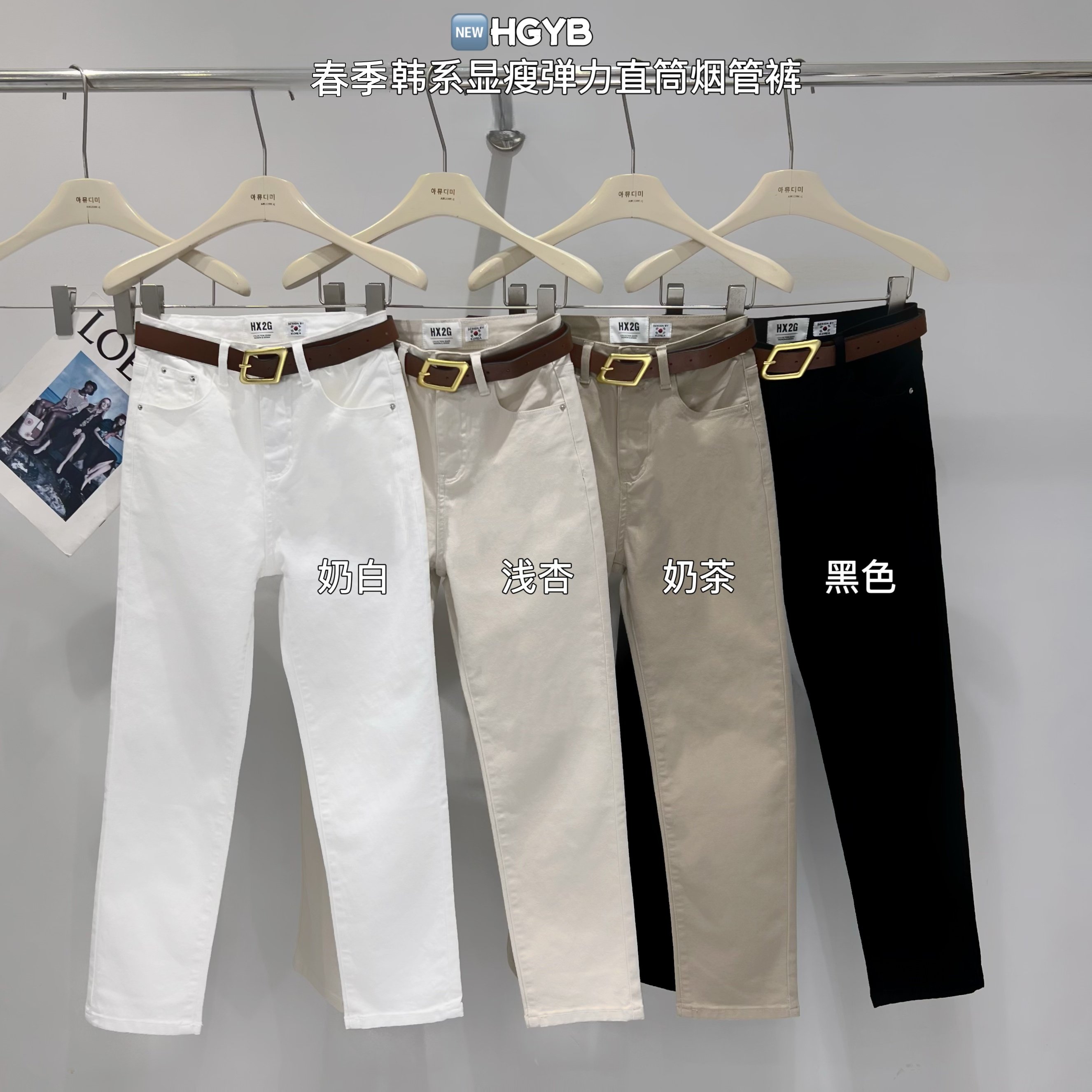 HX2G直筒烟管裤女2026春季新款韩版修身显瘦高腰弹力休闲牛仔裤子