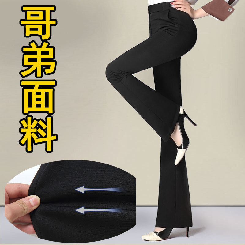 pusumede 塑造腿精 黑色高腰微喇裤女高弹力显瘦直筒休闲喇叭裤