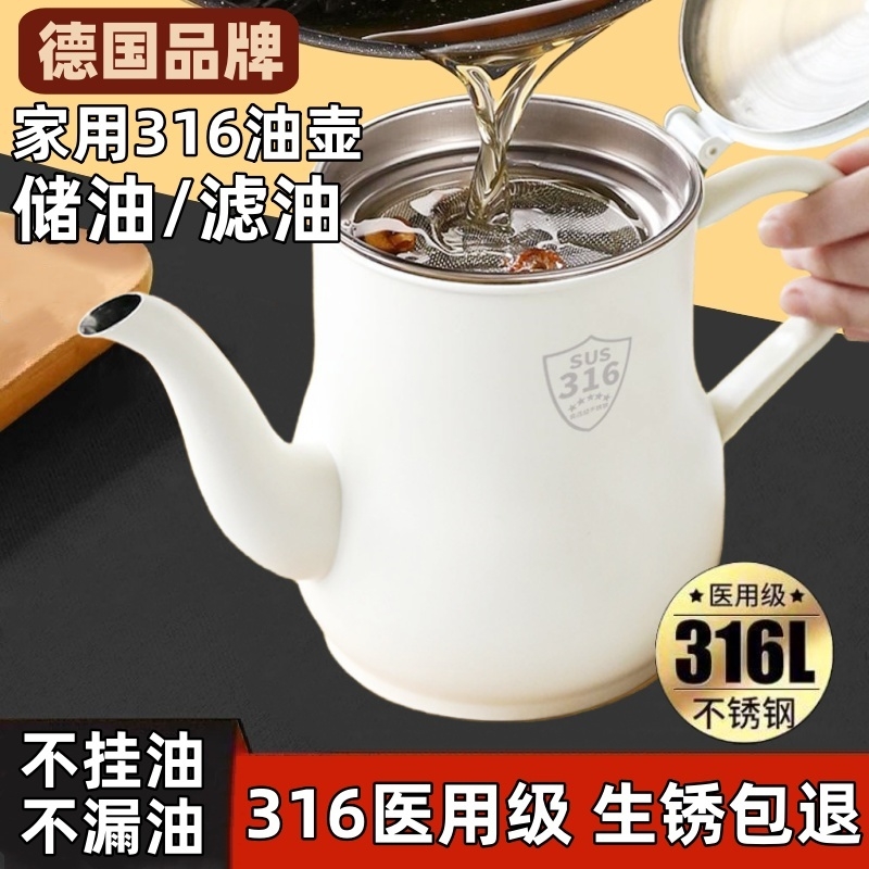 德国不锈钢油壶316食品级加厚2025新款油渣过滤网渣家用储油防漏