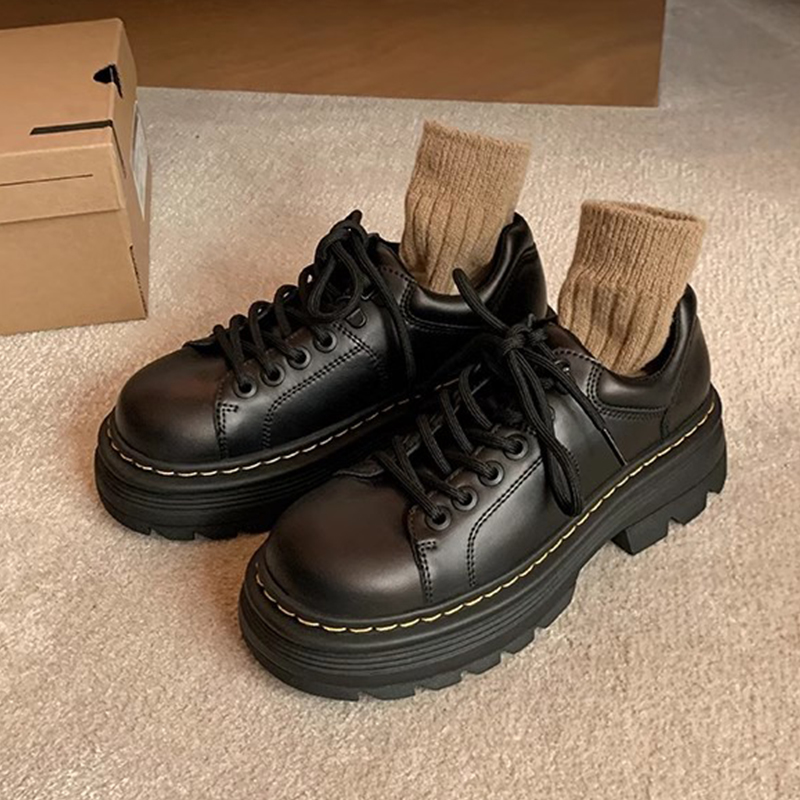 notdetailed原创 小圆头粗跟系带小皮鞋暗黑风厚底单鞋低帮男女鞋