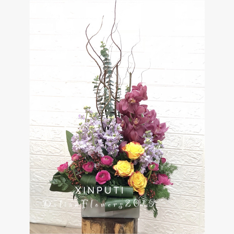 大连鲜花同城速递送朋友闺密开业乔迁生日办公室吧台送人艺术花篮