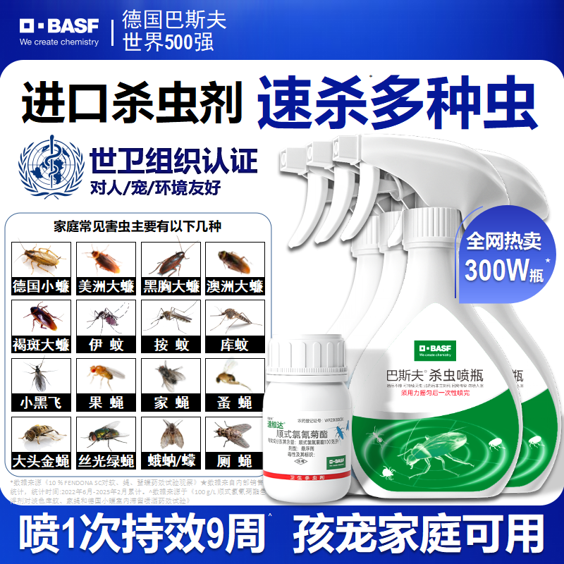 德国巴斯夫杀虫剂喷雾剂家用室内非无毒驱灭除蚂蚁蚊子蟑螂药神器
