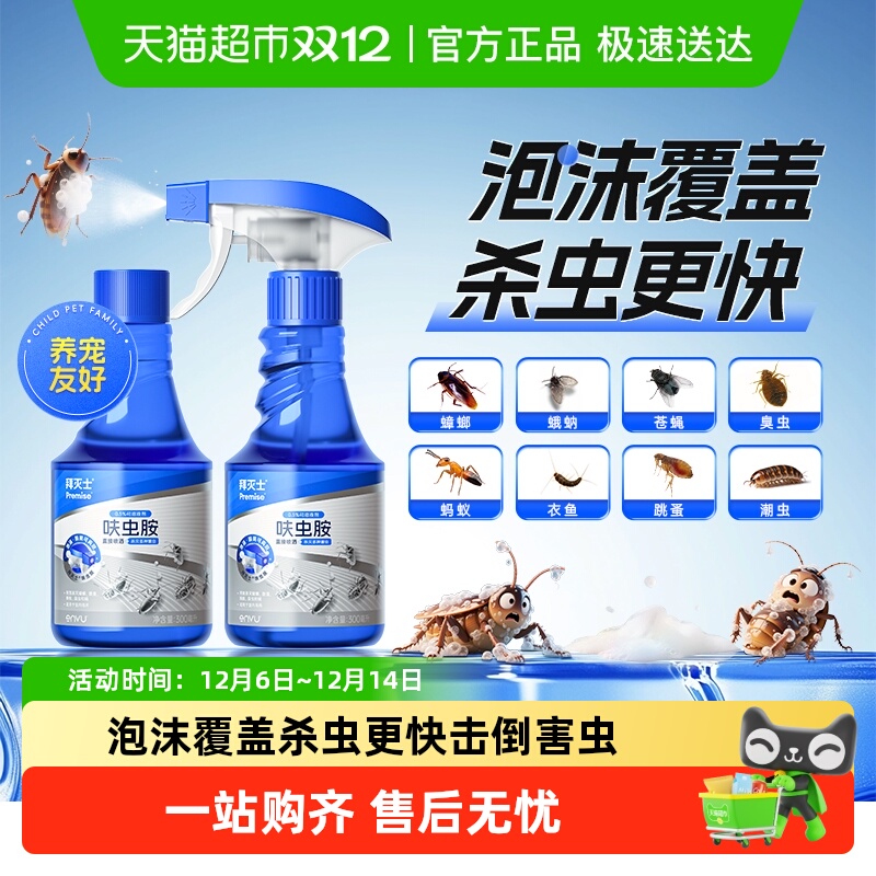 拜灭士呋虫胺杀虫剂泡沫喷雾家用蟑螂药蚂蚁跳蚤全窝非无毒端防护
