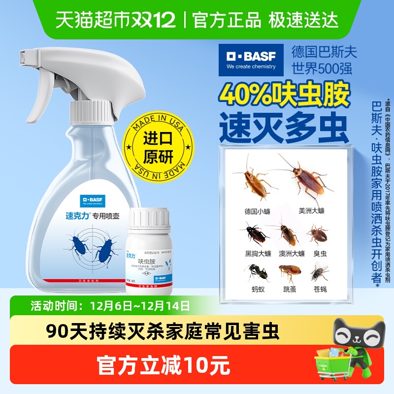 巴斯夫速克力蟑螂药蚂蚁跳蚤臭苍蝇呋虫胺全窝端非无毒杀虫剂喷雾