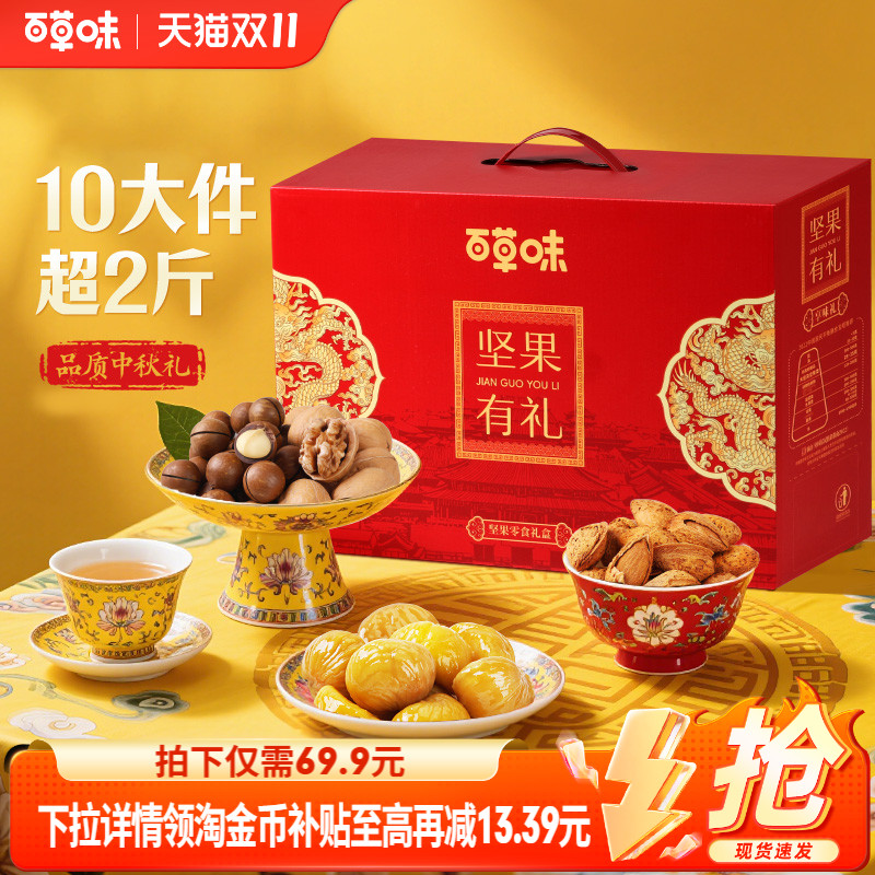 百草味中秋坚果礼盒干果零食大礼包送礼走亲戚高档礼品装公司团购