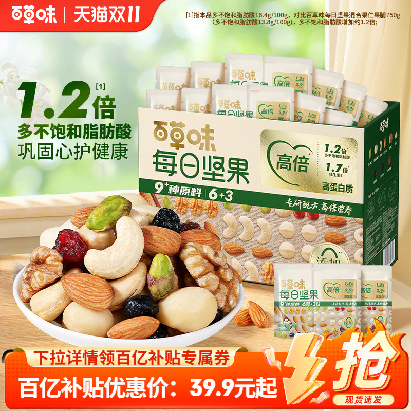 百草味每日坚果礼盒750g干果混合健康孕妇零食大礼包早餐健康果仁