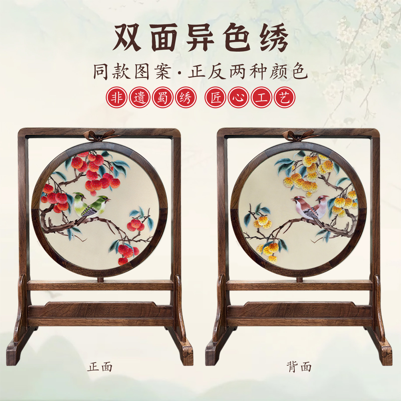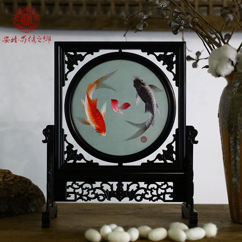 蜀江锦院蜀绣双面绣刺绣摆件自然系列桌面屏风生日礼品出国送老外