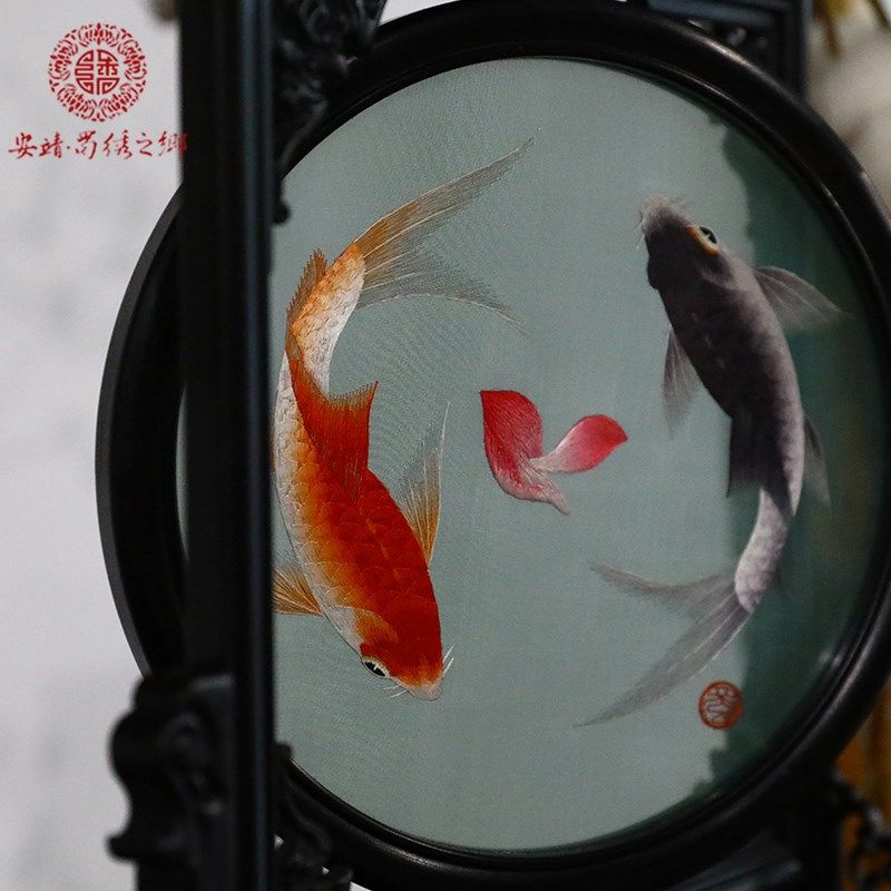 蜀绣双面精品绣芙蓉锦鲤摆件中国特色礼物送老外成都纪念品伴手礼