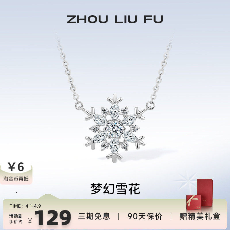 周六福S925纯银梦幻雪花项链吊坠设计唯美轻奢锁骨链送女友礼物
