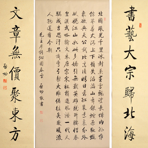 名人毛笔手写真迹启功老师作品字画书法定制四尺中堂沁园春办公室