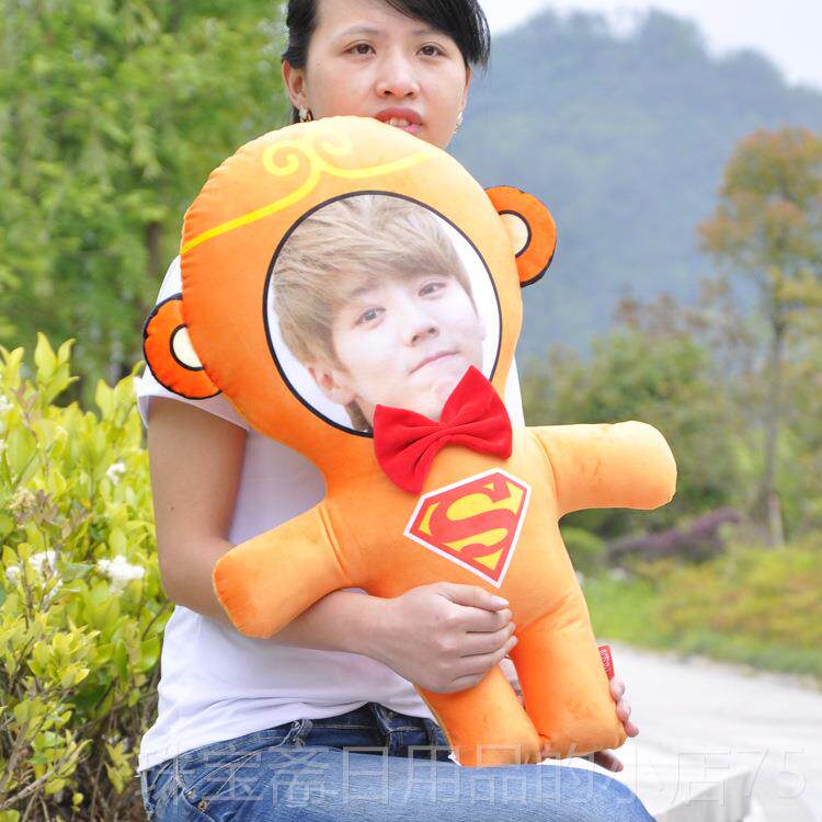 高档图片定制真人头抱人形玩枕偶娃娃权志晗龙鹿同款毛绒像公仔送