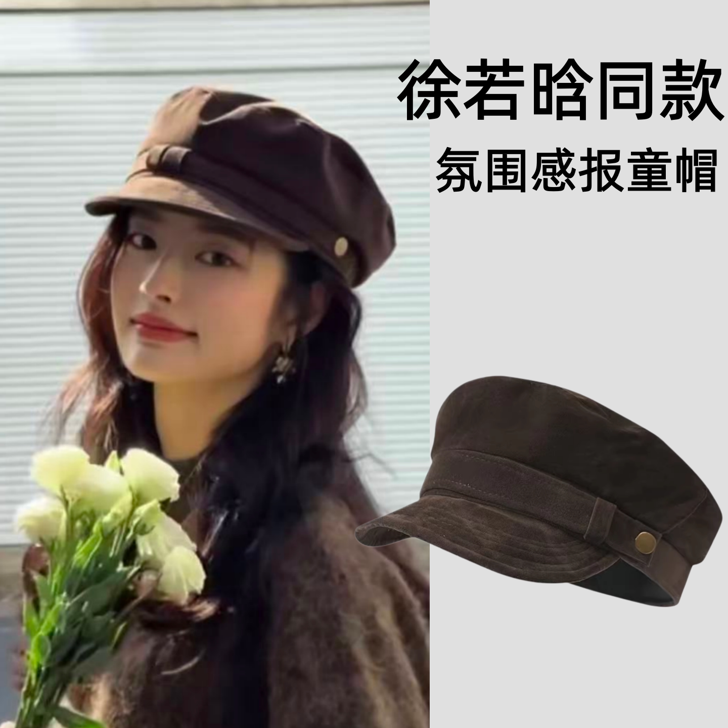 徐若晗同款春秋氛围感美拉德系鹿皮绒平顶报童帽女冬季复古英伦帽